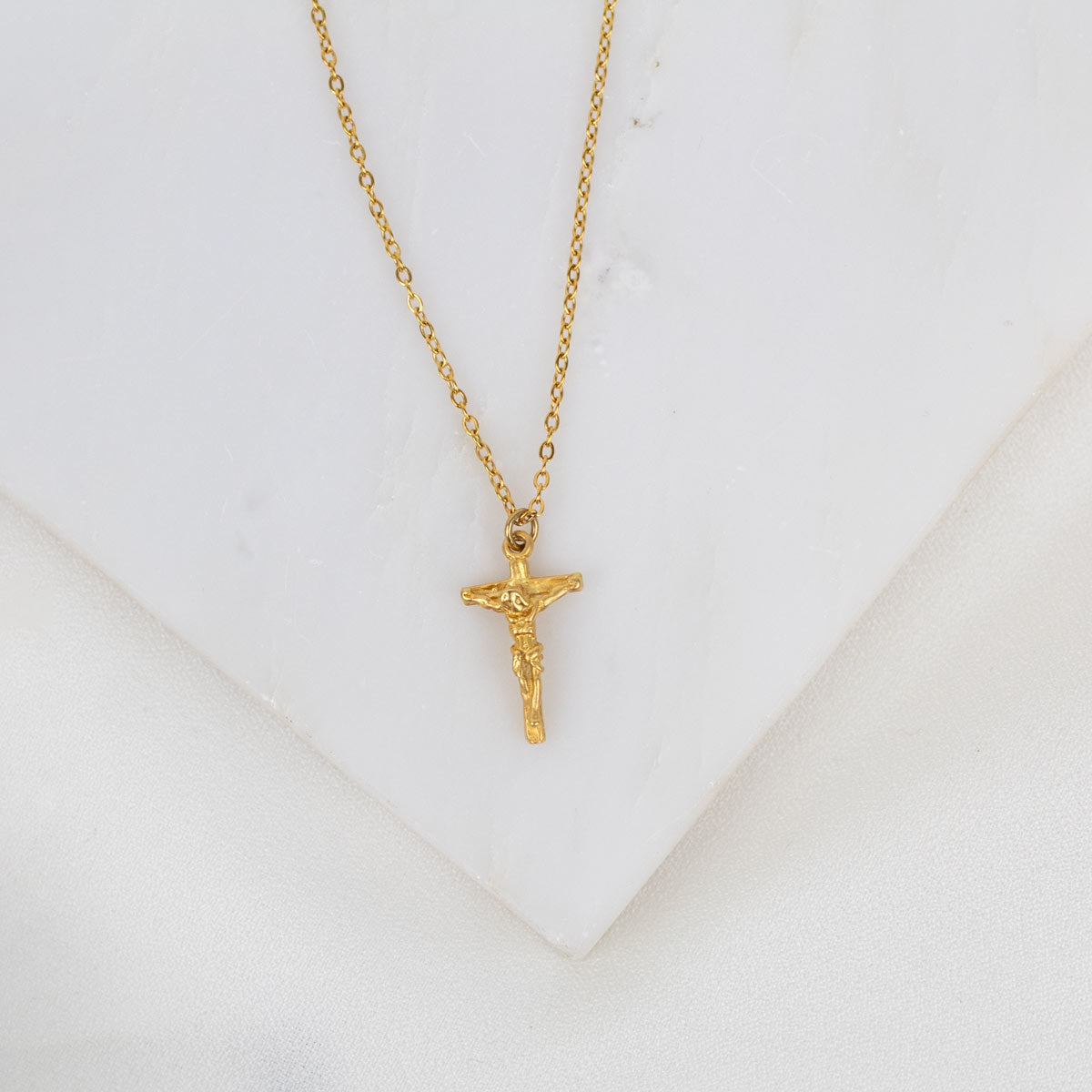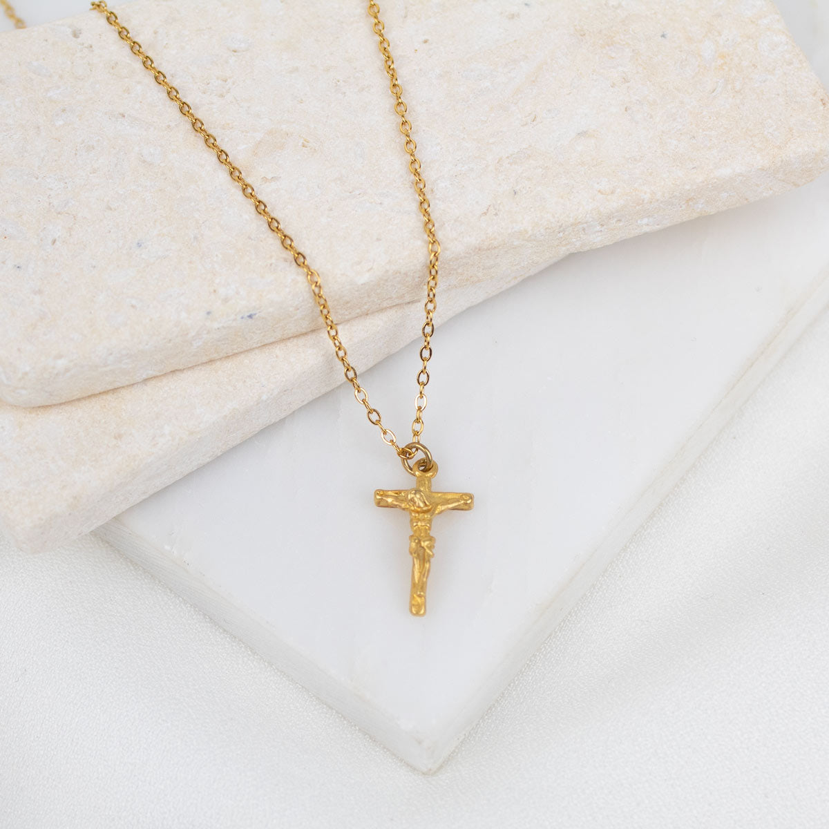 • 18K gold-plated 20 mm x 12 mm crucifix
