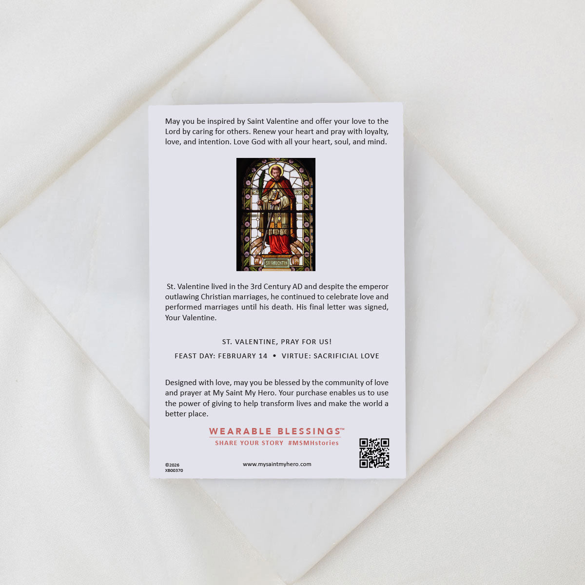 Saint Valentine believed in love and the union of two people centered in Christ. Let this be your reminder to choose love today and every day! Wear this piece and stand firm in love, faith, family, and the sanctity of marriage. St. Valentine, pray for us.