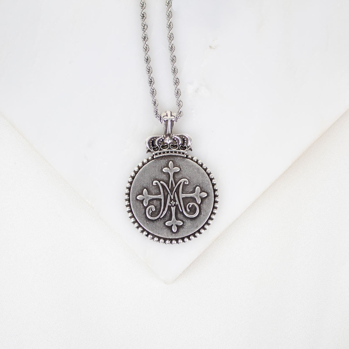 • 1" Austrian crystal inset crown pendant with an Auspice Maria on the back