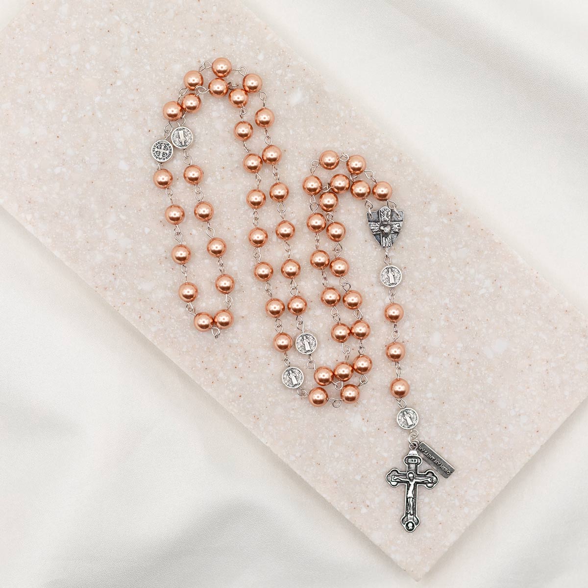 A rosary is a set of prayer beads that connects our hearts with the unconditional motherly love of Mary as she leads us step by step, bead by bead through the life of her Son and the wonders of His love. As you hold this rosary, feel the lineage of the thousands of hearts linked together through the rhythm of the Rosary. May His ultimate healing be with you and may your journey with Him be strengthened through the Rosary.