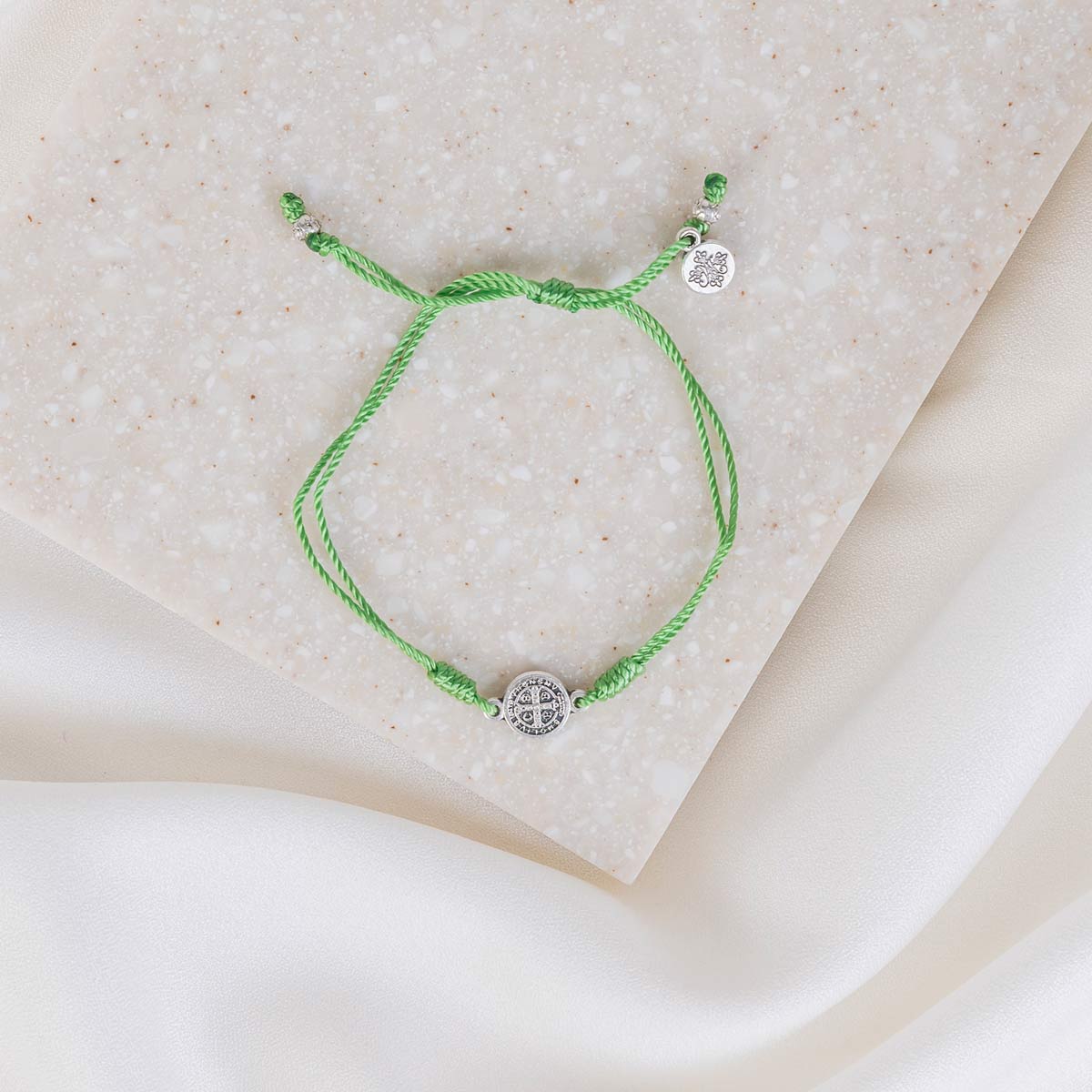 - Gold or silver-tone 1 cm Benedictine Medal of protection and our logo charm