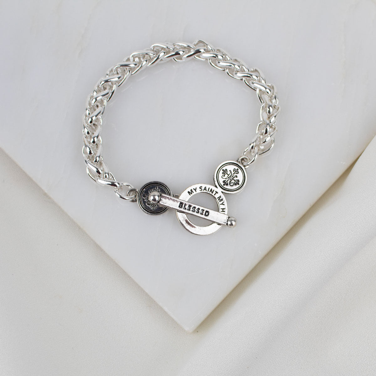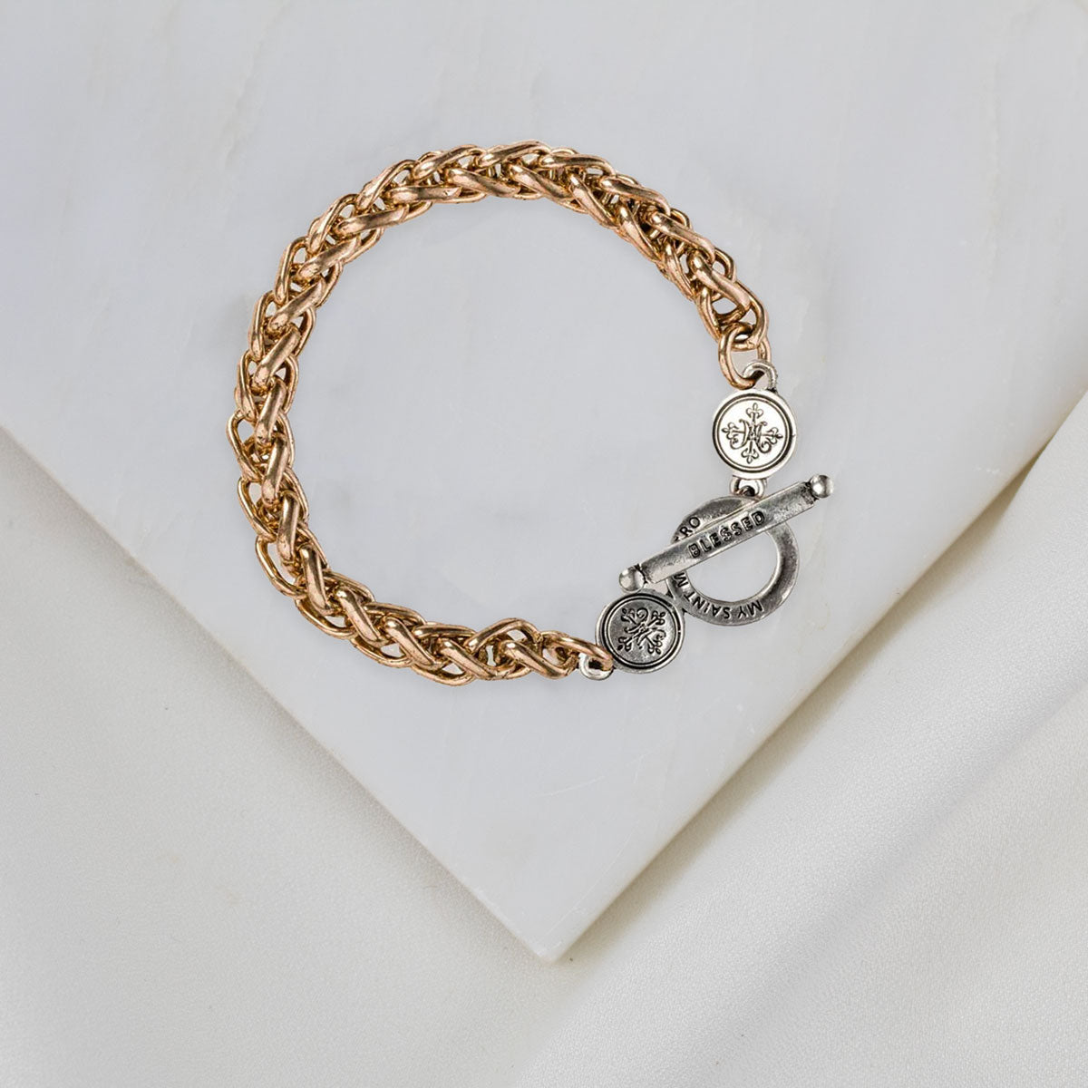 The bracelet is just what I was hoping. It is chunky and bold and has both gold and silver. The contrast of the two medals makes it so attractive. I feel blessed wearing it! Great job design team!